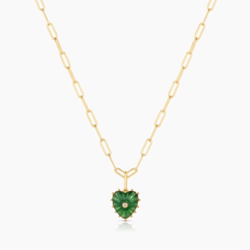 She's Malene's baby sister, a smaller hand-carved green jade heart charm with a sparkling center stone. A favorite for gifting and layering.