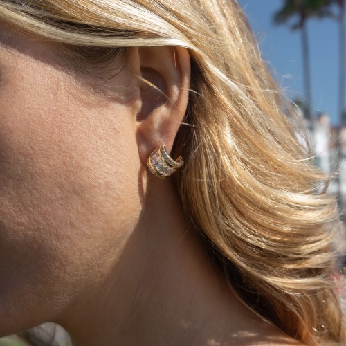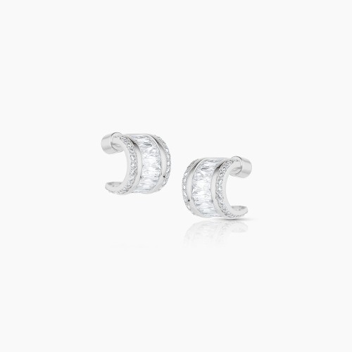 These dazzling hoop earrings blend pavé and baguettes to create a luxurious statement. Inspired by high glam of the 40s, these are our dressiest earrings for every celebration.