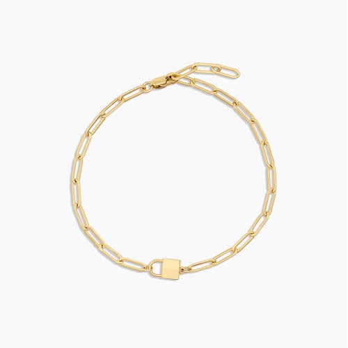 A delicate paperclip chain bracelet affixed with a mini lock charm. The matching counterpart to our